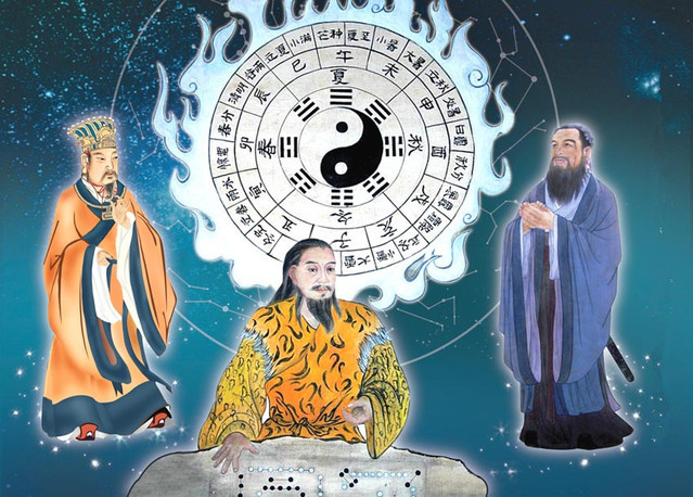 总结一下说,《易经》这本书的形成是八个字,“世历三古,易更三圣”。“三圣”呢,就是伏羲、文王和孔子三位圣人。"世历三古",就上古时期,中古时期和近古时期。那么那么他们分别对《易经》作出了重大贡献